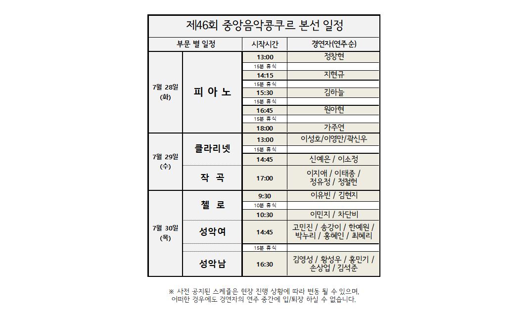 *성악부문 일정이 15분 앞당겨졌습니다.