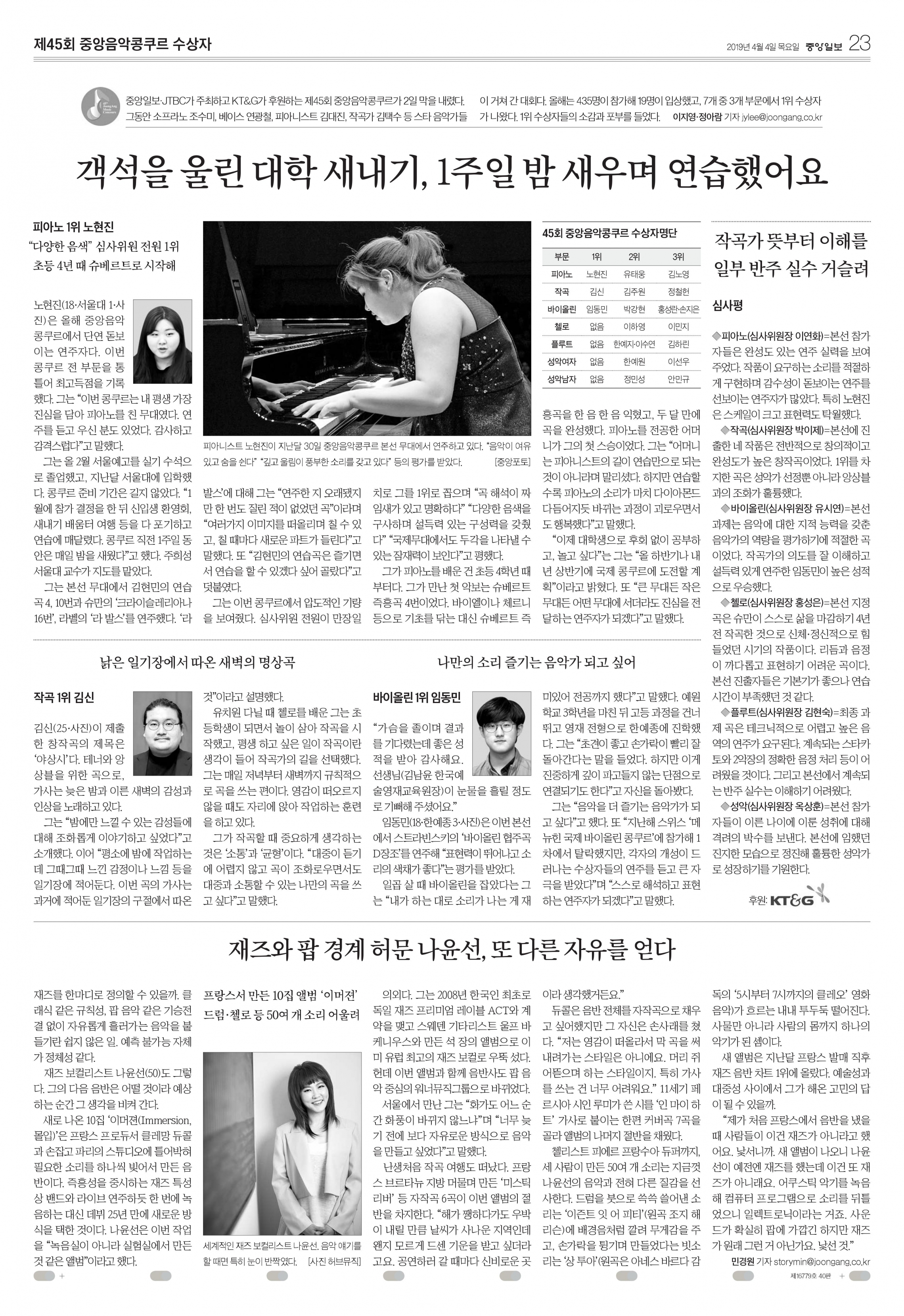 | 제목 | 2019 제45회 중앙음악콩쿠르 수상자 | ||||||