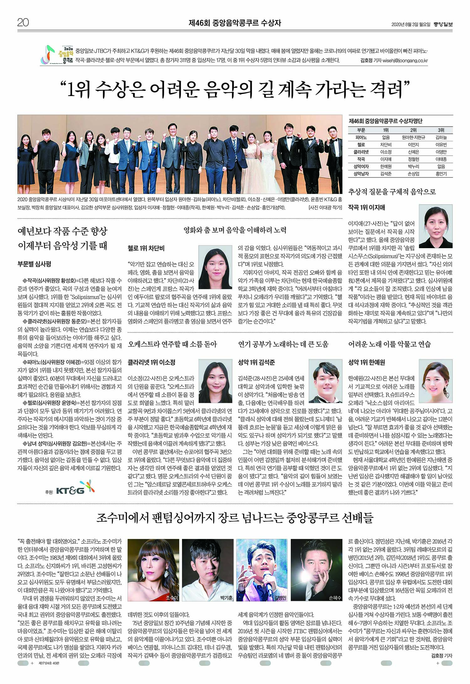 제목 2020 제46회 중앙음악콩쿠르 수상자