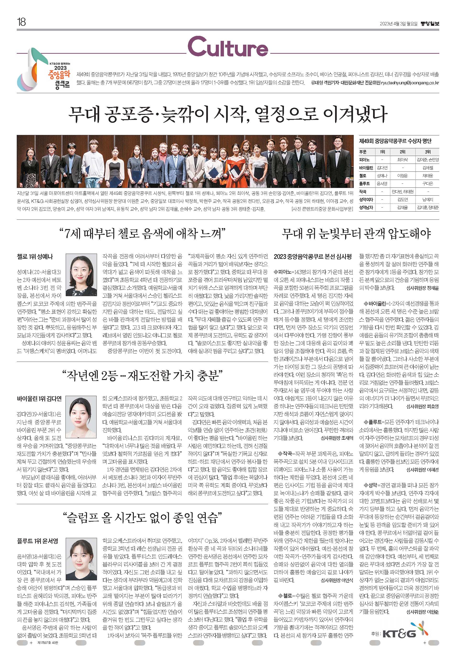 제목 2023 제49회 중앙음악콩쿠르 수상자